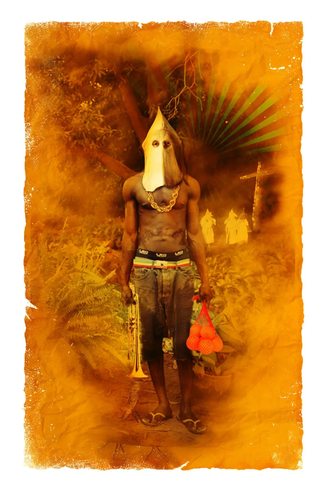 I was asked to be in a show of African American artists during the month of February, and i not so respectfully declined (as i am tired of being pigeon-holed as a black artist especially when it comes to doing shows during "black history month".the curator called me back a few days later, having run into the same concern from other artists he asked to be involved....so he eloquently titled the show "28 Days Later".i decided to do a concept piece about stereotypes and race in this day and age.i call this piece "Boy N A Hood"